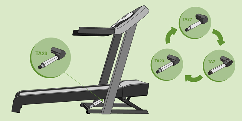 TA23、TA37和TA23电动推杆可以推动重型负载,因此特别适合这种应用类型。这些产品坚固耐用,对于支撑使用者体重和跑步时造成的震动十分重要。它们几乎不需要保养,十分可靠和耐用,能够禁得起时间的考验。其选配的 IP 防护等级让它们能够抵挡水滴或装置清洁剂、脏污和其他尘土的入侵。此外,霍尔传感器等内建传感器,使它们能够进行程序设定,且能轻松整合至现有系统,十分适合已搭载复杂电气系统的跑步机。