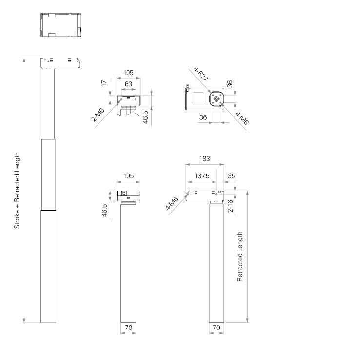 An electric lifting column consists of an electric actuator integrated with a telescopic tube. The actuator provides the push and pull, while the telescopic tube provides the guidance. TiMOTION lifting column series offers reliable vertical movement and allows height adjustment of many industrial, medical, workplace and comfort equipment.