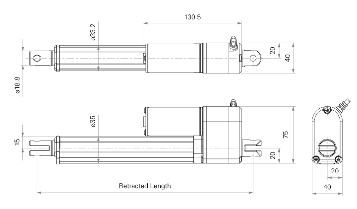Retracted length: ≥ Stroke + 105mm (without output signals)