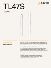 TL47S 是 TiMOTION (第一傳動) 推出的三節式直線升降立柱,採用柔和方形 (soft square)外觀設計,在現代美感與穩定性能之間取得完美平衡。其俐落、精緻的外型,非常適合需要風格與功能無縫結合的應用場景。